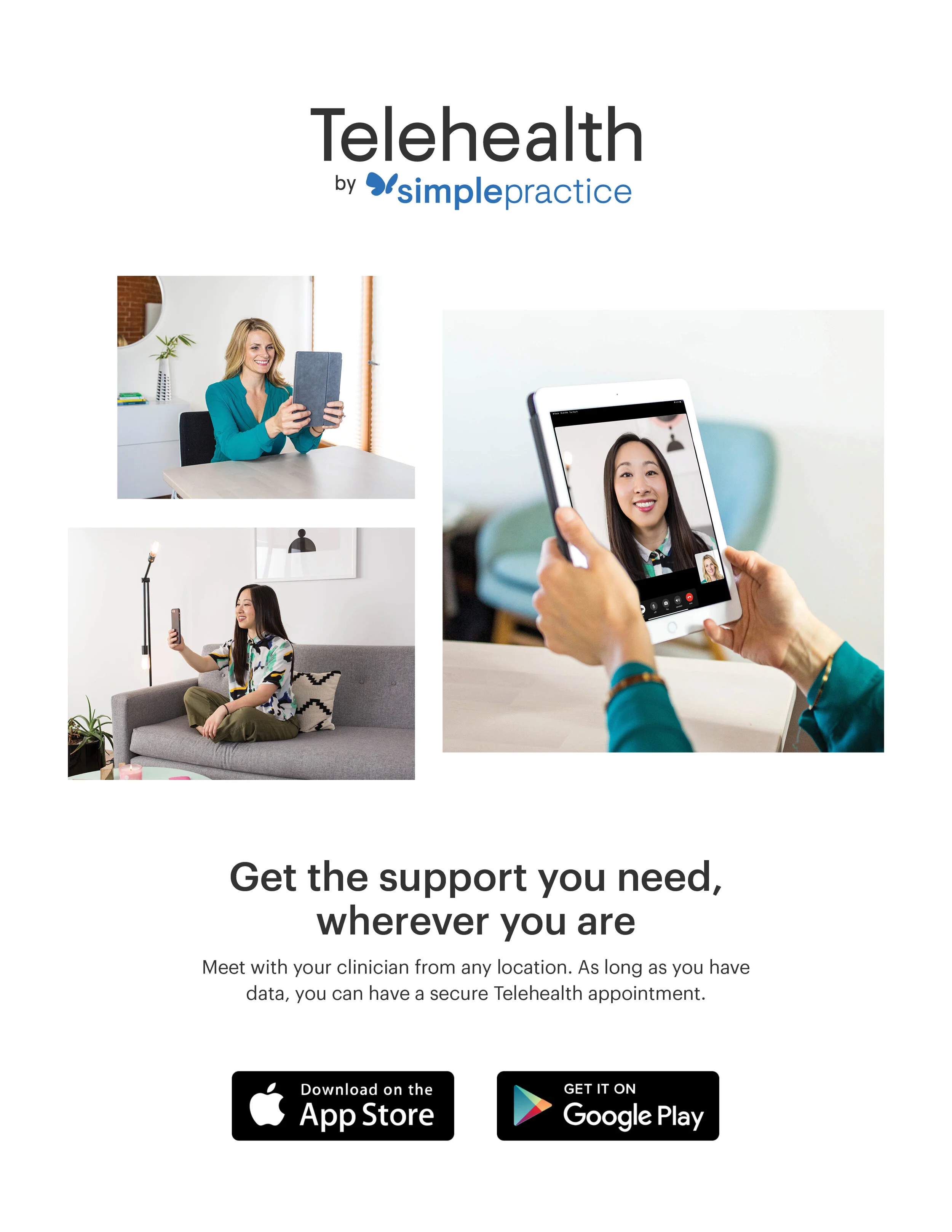 We offer telehealth appointments that take place online in a HIPAA-compliant video system (see Client Portal). Online therapy, teletherapy, or telemental health, all refer to the delivery of psychological services by phone, videoconferencing, and other methods of telecommunication technologies.